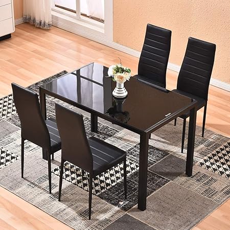 The dining table has four straight legs and a rectangular tabletop. 3 piece dining table set, modern style wood table top dining table set with bench and metal frame, breakfast nook dining room set, dining set for 4, kitchen living dining room furniture, beige, w13601. The black glass tabletop brings a dramatic effect to the design. A glass dining room table says it all and beats every other kind of dining table design and make. Our collection of white dining tables and black dining tables make for an artful arrangement.